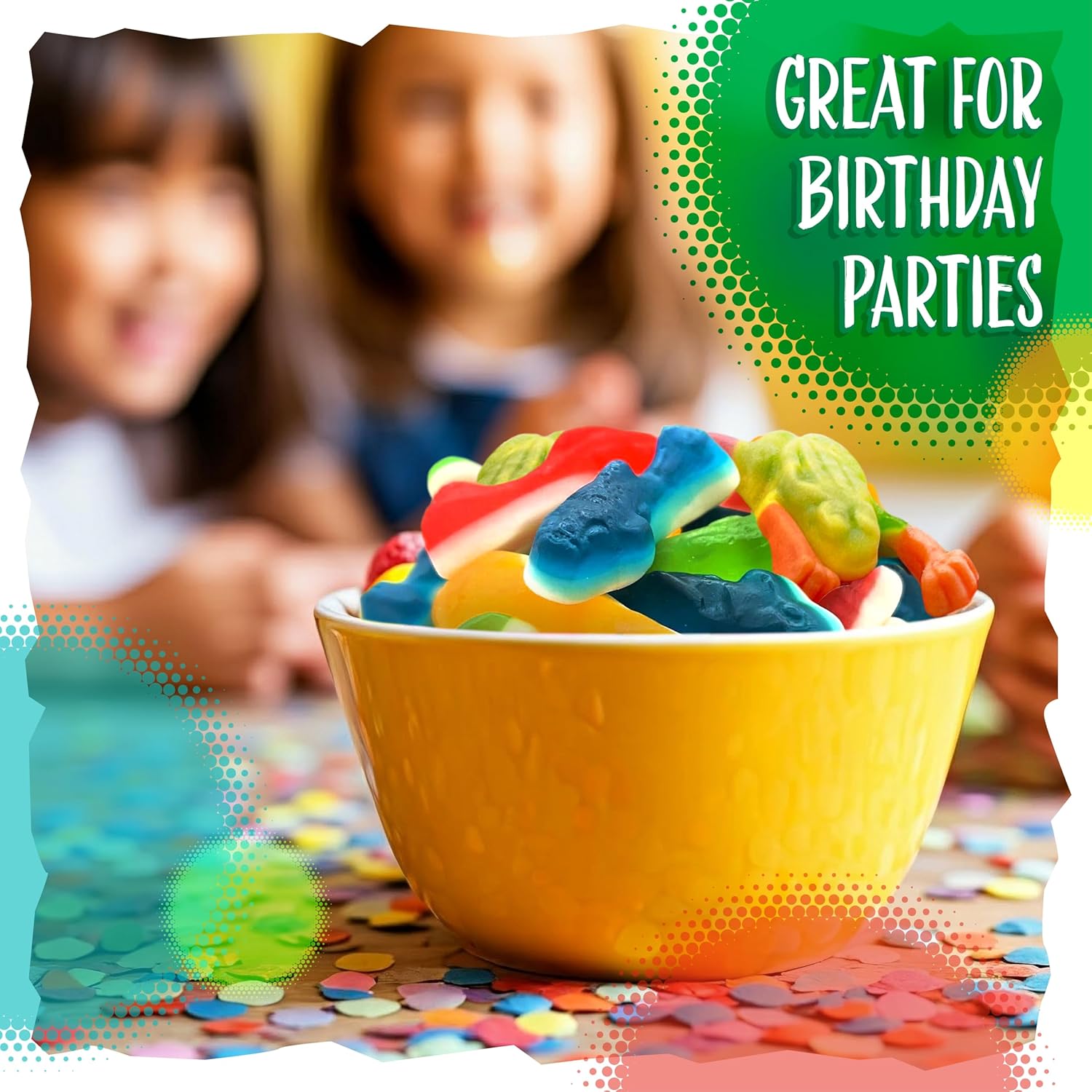 • This bulk bag holds 2 pounds of Gummy Sharks and Leaping Frogs Gummy Mix in assorted fruit flavors, delivering a colorful assortment of chewy treats perfect for sharing, snacking, and party setups