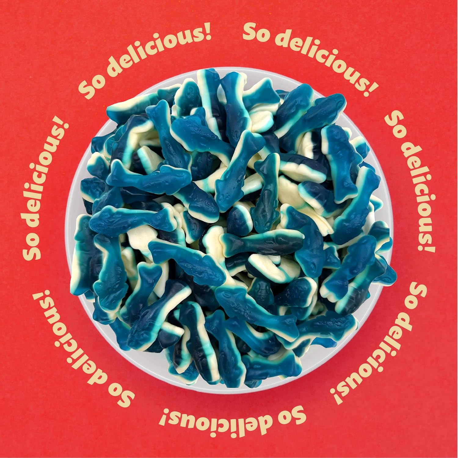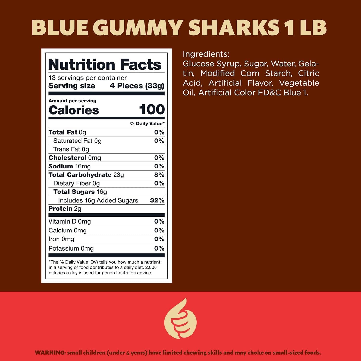 • This bag holds 1 pound of Gummy Sharks Candy - soft, chewy, and packed with fruity flavor, these blue shark shaped treats bring a bite of ocean-inspired fun to every bite