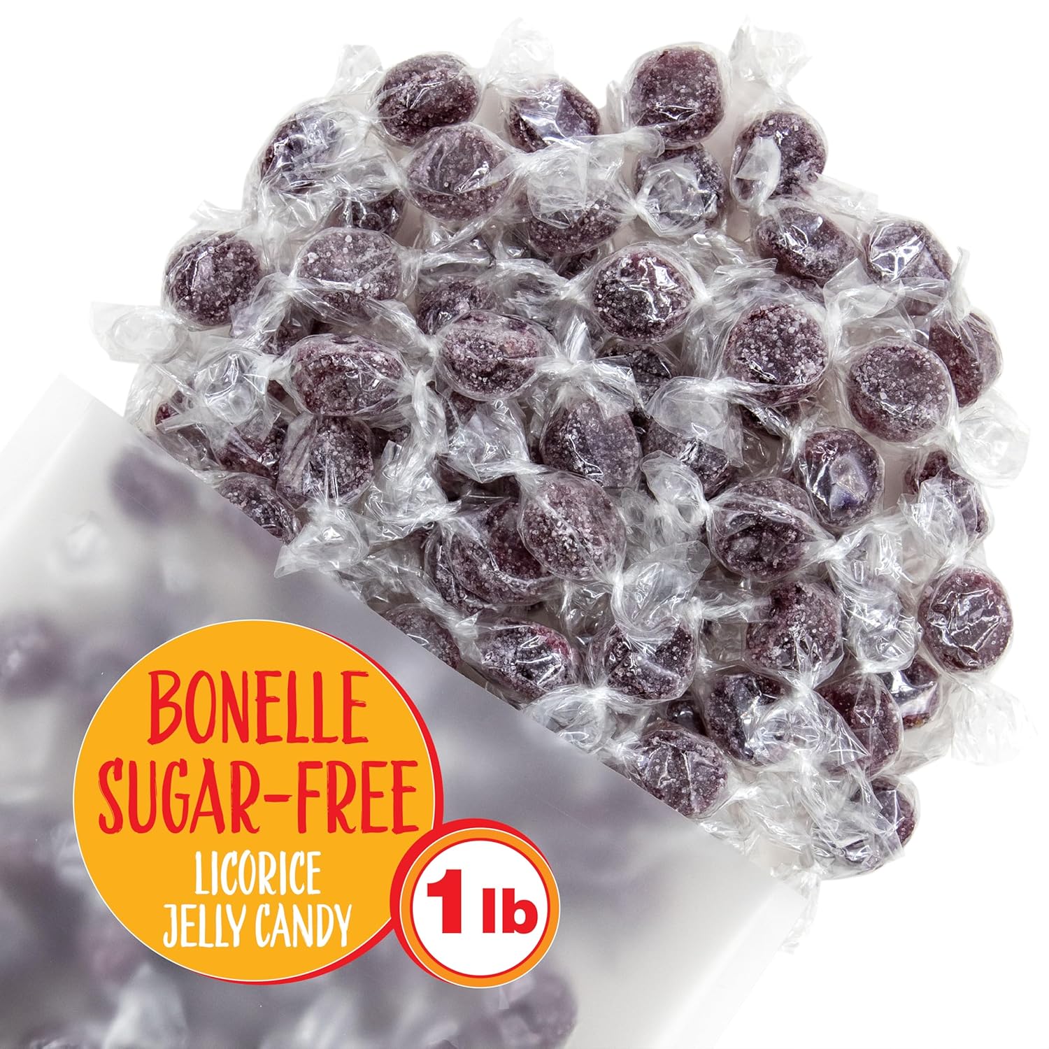 Fida Bonelle Sugar Free Candy | 1 Pound Bag | Black Licorice Jelly Candy Individually Wrapped | Naturally Flavored Dye Free Candies | Italian Gourmet Licorice