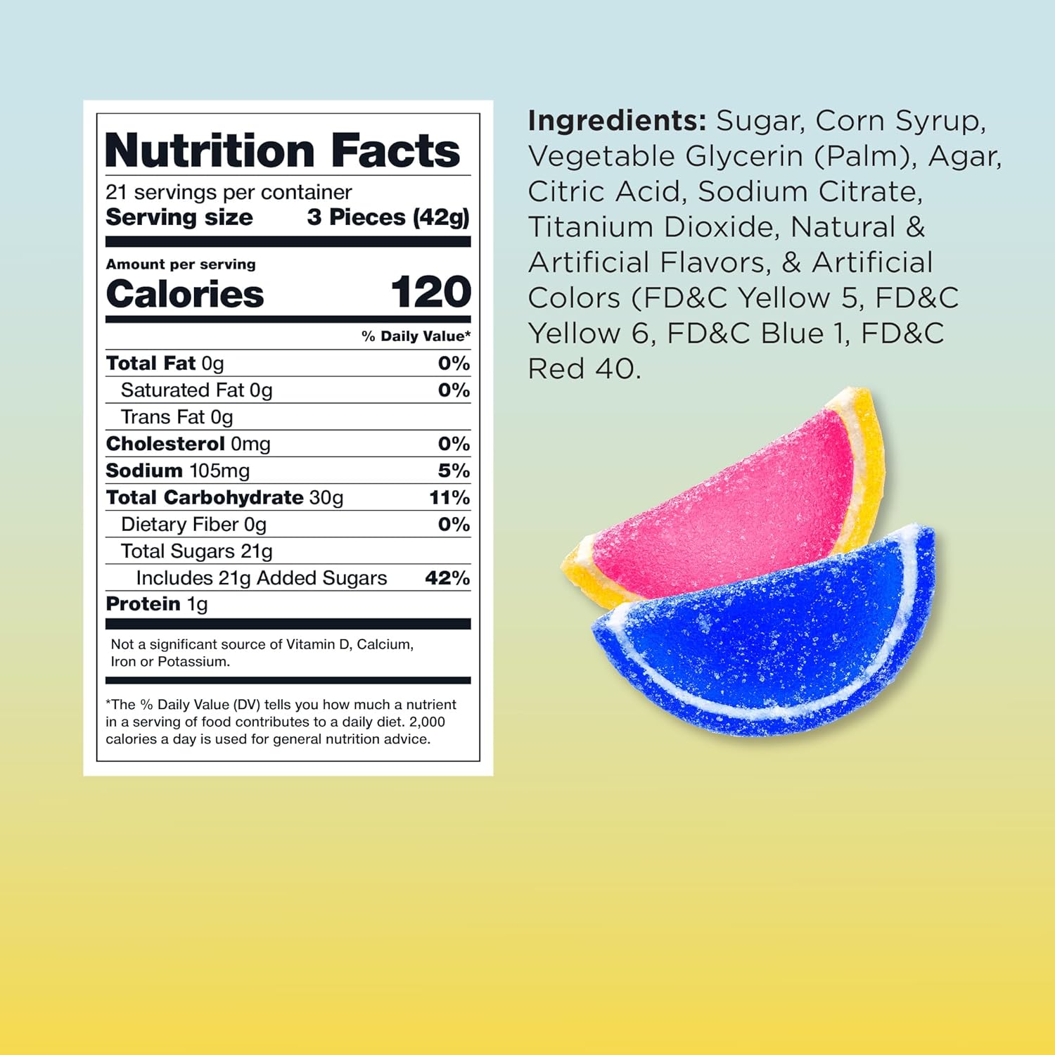 • This bulk bag holds 2 pounds of Assorted Fruit Jelly Slices Candy; approximately 60 pieces per order