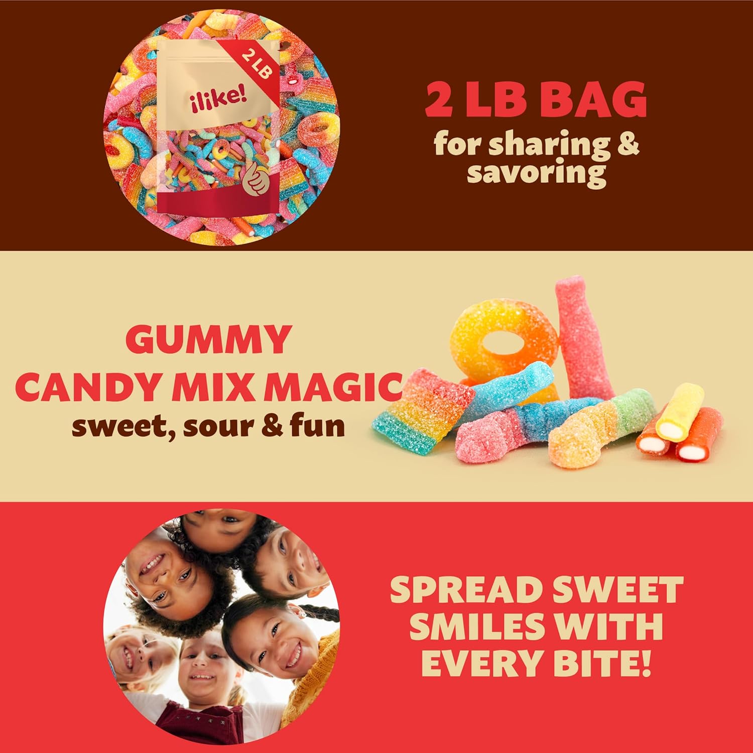 Gummy Candy Mix 2-Pound Bag | Peach Rings, Pencil Bites, Worms, Bottles, Belts