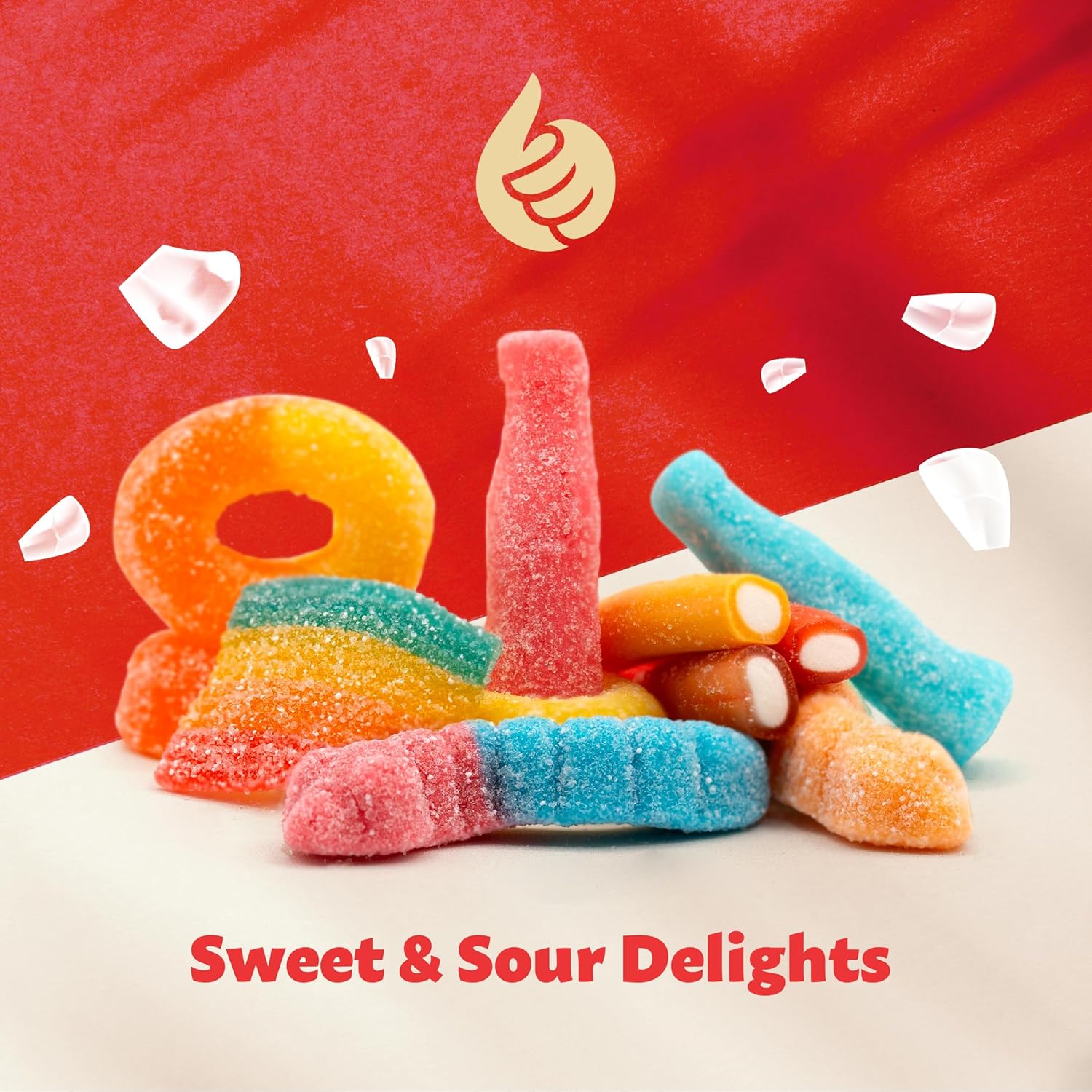• This bulk pack holds 2 pounds of Sour and Sweet Sugar-Sanded Assorted Fruit Gummies