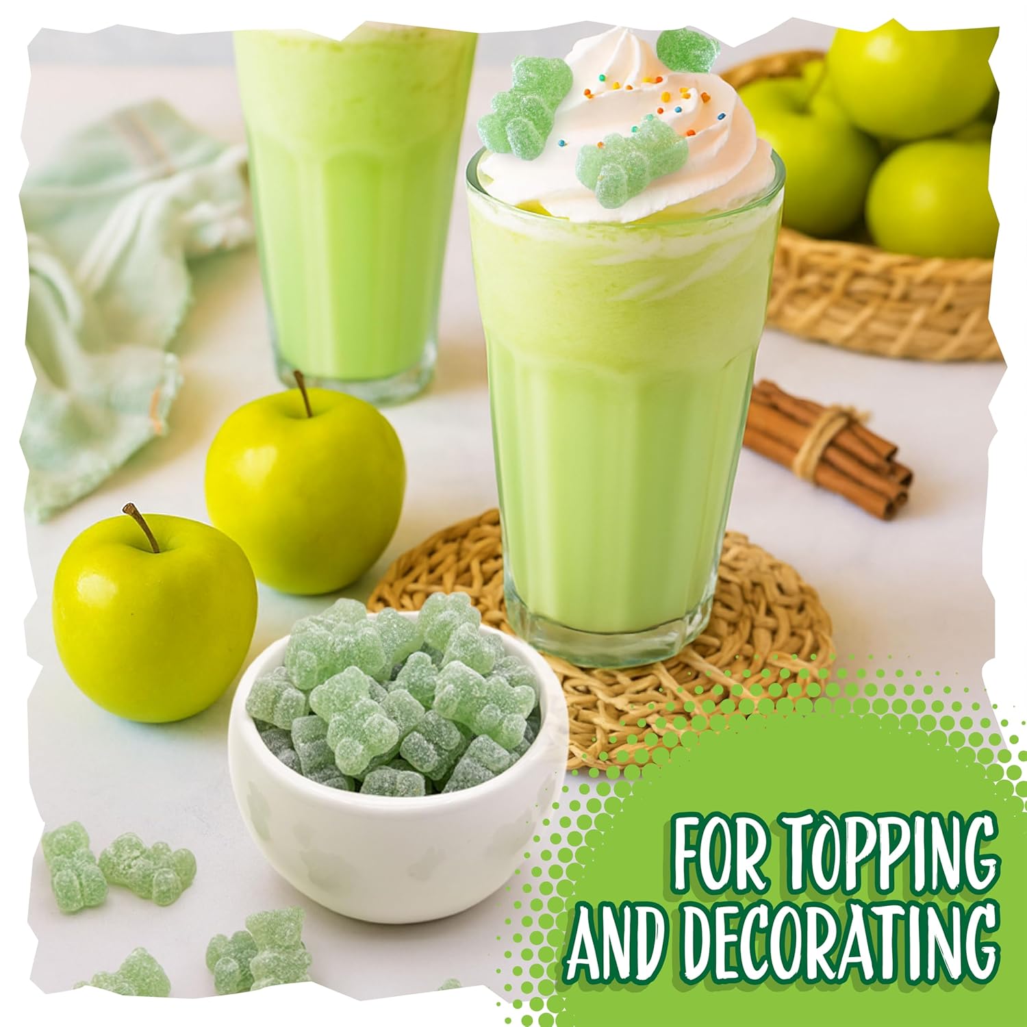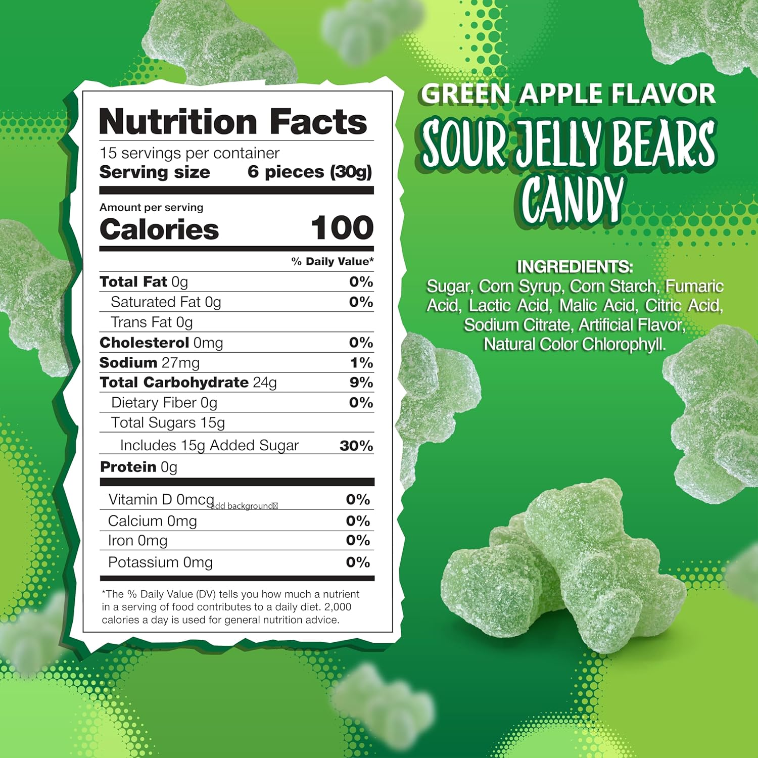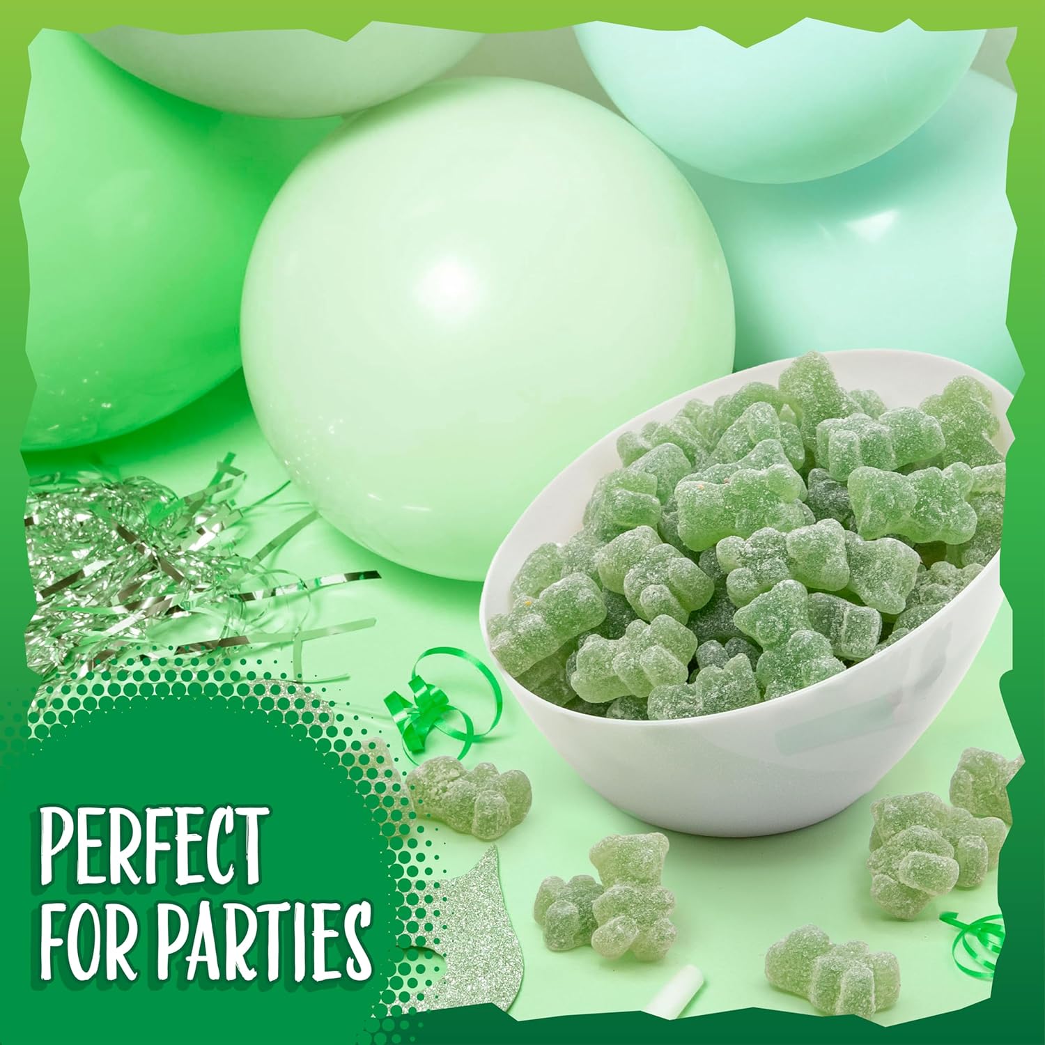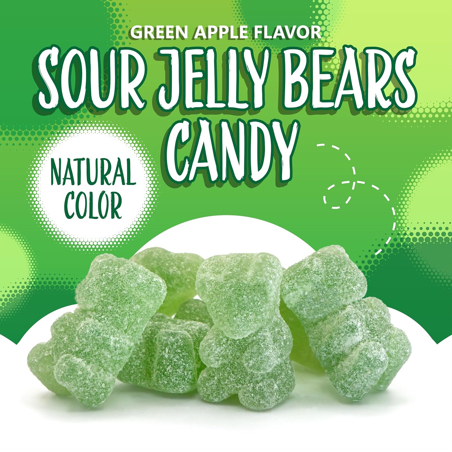 This 1-pound pack of sour candy bursts with crisp green apple zing in every bite of Sour Gummi Bears, perfect for candy buffets, party bowls, or keeping your personal stash fully loadedOur naturally colored sour gummies transform classic bear candy into a mouth-puckering adventure, perfect for movie marathons, epic road trips, or quick pick-me-upsMade as dye free candy and free from gelatin, these chewy green apple delights are crafted to please your sweet tooth with tangy flavor and a satisfyingly soft biteThese sour gummies bring playful fun to gift baskets, bake-off toppings, or creative dessert garnishes - they are as versatile as they are delicious; they have a jelly-like textureWhether you’re building a candy board, planning themed event treats, or filling favor bags, these bright, tangy sour gummi bears add a burst of flavor and a pop of cheerful color